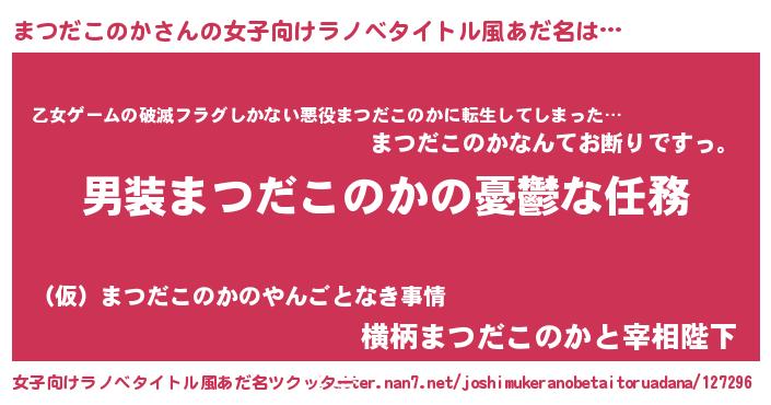 | 男性向けラノベタイトル風あだ名 | 『うちのまつだこのかが世界を掌握している!』 |