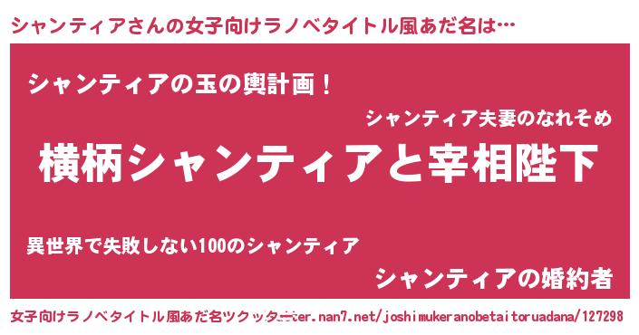 | 男性向けラノベタイトル風あだ名 | 『シャンティアに滅ぼされるだけの簡単なお仕事です』 |