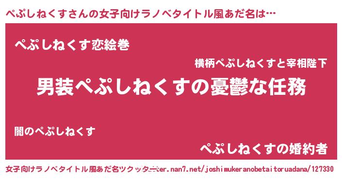 | 男性向けラノベタイトル風あだ名 | 『うちのぺぷしねくすが世界を掌握している!』 |