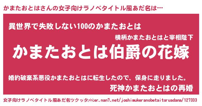 | ファンタジー風あだ名 | 『エターナルカマタオトハー』 |