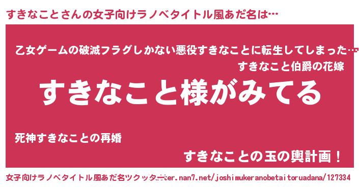 | 男性向けラノベタイトル風あだ名 | 『すきなことの嫁は女の子じゃないと思った?』 |