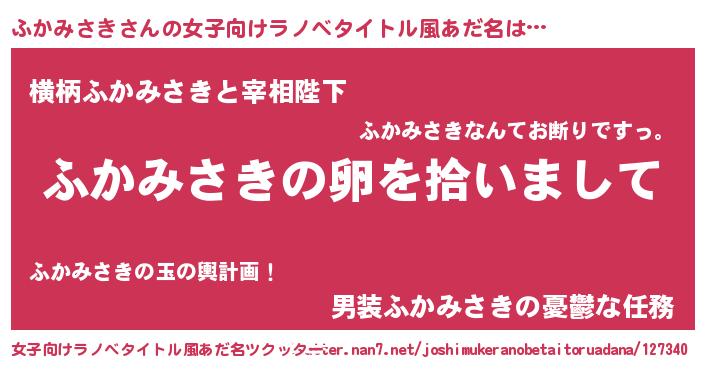 | 男性向けラノベタイトル風あだ名 | 『ふかみさきの嫁は女の子じゃないと思った?』 |