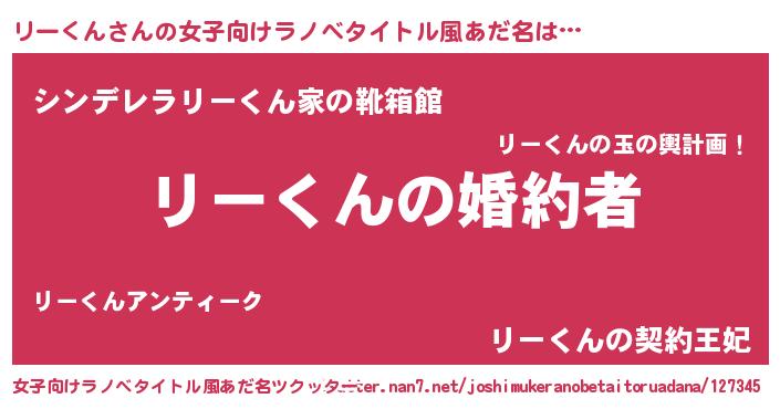 | 胡散臭い通販商品みたいなあだ名 | 『運命の人と巡り会える高級そうな壺…その名も「リーくん」』 |