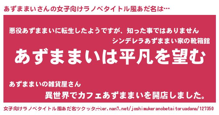 | 胡散臭い通販商品みたいなあだ名 | 『信頼と実績のサプリメント…その名も「あずままい」』 |
