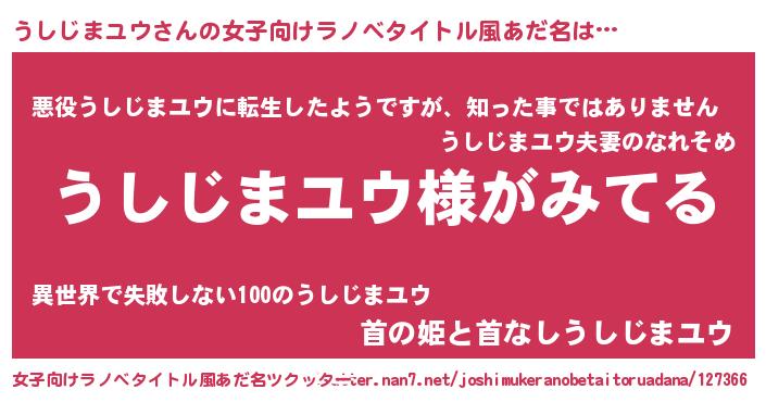 | 男性向けラノベタイトル風あだ名 | 『うしじまユウの嫁は女の子じゃないと思った?』 |