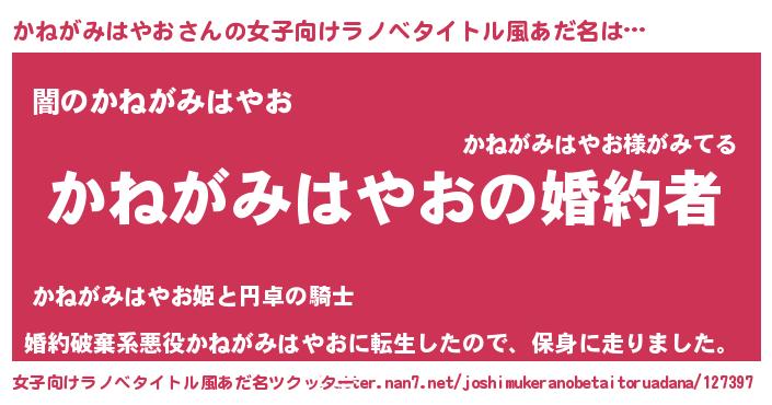 | ファンタジー風あだ名 | 『エターナルカネガミハヤオー』 |