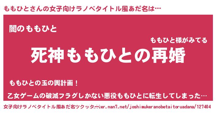 | 男性向けラノベタイトル風あだ名 | 『ノーゲーム・ノーモモヒト』 |