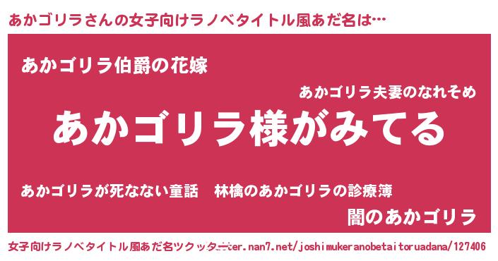 | ヒーロー風カッコイイあだ名 | 『幻影騎士アカ』『最強戦士アカゴリラ』 |