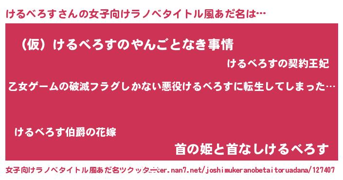 | 意味不明あだ名 | 『住所不定無職けるべろす(9歳)』 |