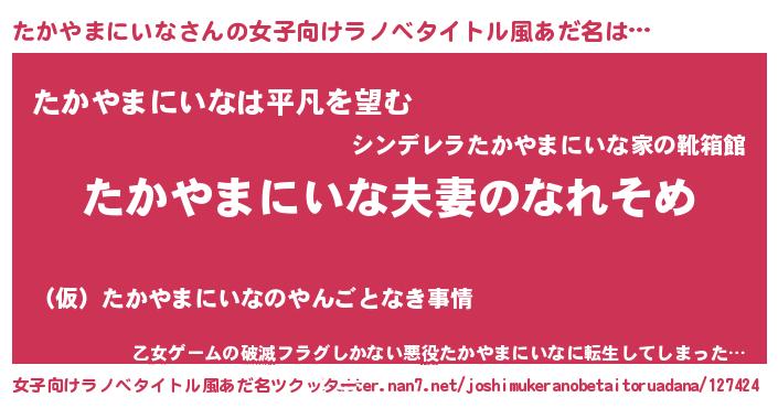 | 男性向けラノベタイトル風あだ名 | 『おまえをオタクにしてやるから、俺をたかやまにいなにしてくれ! 』 |