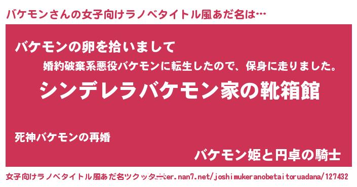 | 胡散臭い通販商品みたいなあだ名 | 『信頼と実績のネックレス…その名も「バケモン」』 |