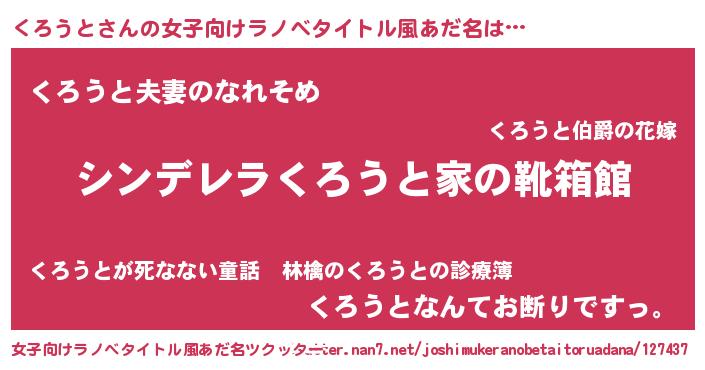 | 男性向けラノベタイトル風あだ名 | 『緋弾のクロウト』『魔弾の王とくろうと』 |