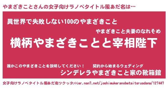 | ヒーロー風カッコイイあだ名 | 『ネオヤマザキコト』『仮面ヤマダー』 |