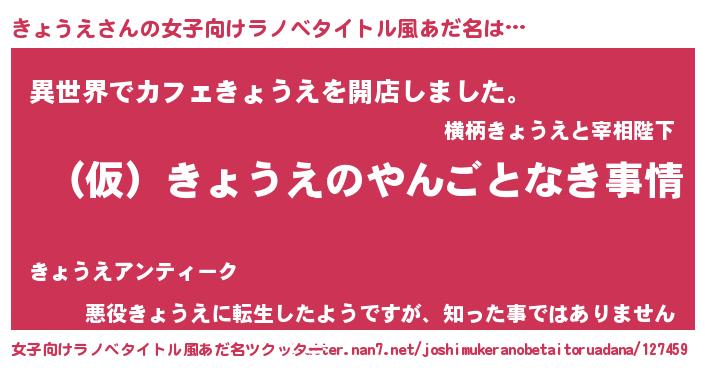 | 男性向けラノベタイトル風あだ名 | 『きょうえの憂鬱』 |