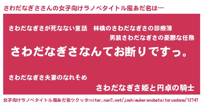 | 男性向けラノベタイトル風あだ名 | 『魔法科高校のさわだなぎさ』 |