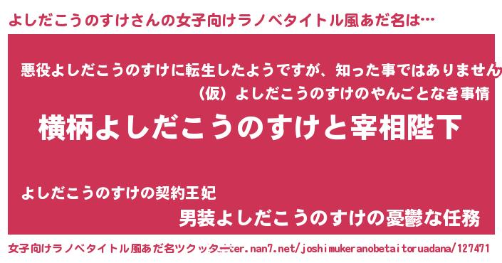 | ヘコむあだ名 | 『よしにー』『よしだこうのすけ(笑)』 |