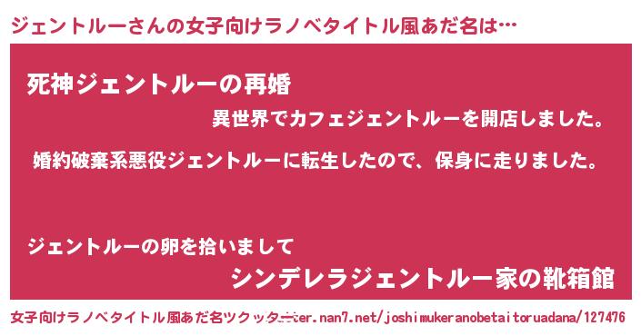 | 男性向けラノベタイトル風あだ名 | 『ジェントルースレイヤー』 |