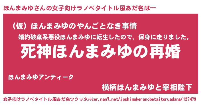 | 男性向けラノベタイトル風あだ名 | 『ノーゲーム・ノーホンマミユ』 |