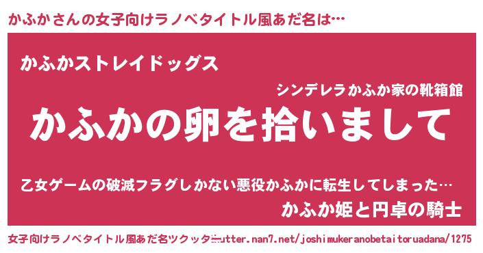 | 意味不明あだ名 | 『とにかく怪しいかふか』『自称かふか』 |
