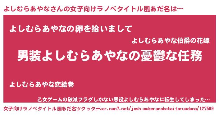 | 男性向けラノベタイトル風あだ名 | 『冴えないよしむらあやなの育てかた』 |