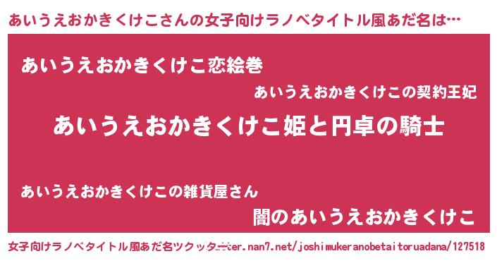 | 男性向けラノベタイトル風あだ名 | 『あいうえおかきくけこの憂鬱』 |