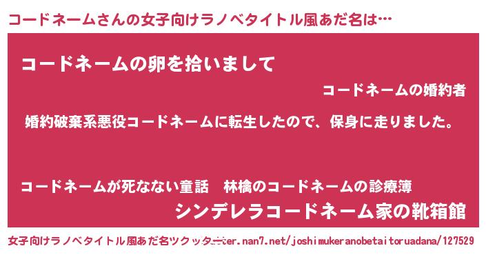 | 男性向けラノベタイトル風あだ名 | 『コードネームスレイヤー』 |