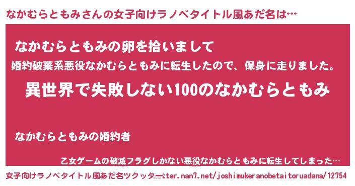 | 男性向けラノベタイトル風あだ名 | 『なかむらともみという概念が存在しない退屈な世界 』 |