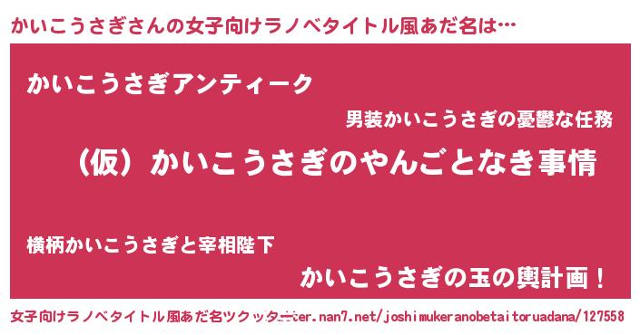 | 男性向けラノベタイトル風あだ名 | 『かいこうさぎの憂鬱』 |