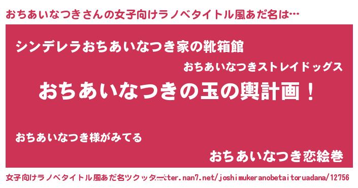| 男性向けラノベタイトル風あだ名 | 『おちあいなつき~年齢イコール彼女いない歴の魔法使い~』 |