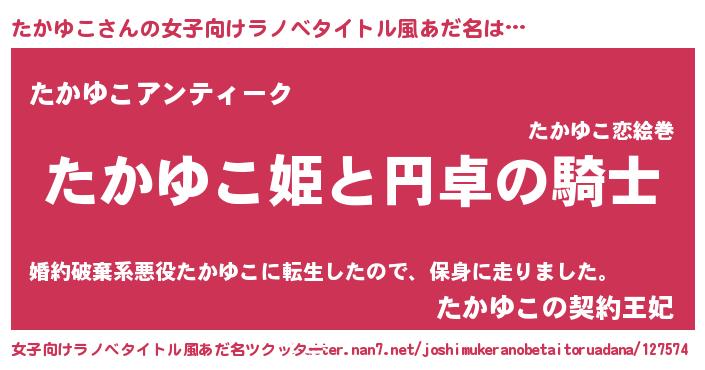 | 胡散臭い通販商品みたいなあだ名 | 『モテモテ間違いなしブレスレット…その名も「たかゆこ」』 |