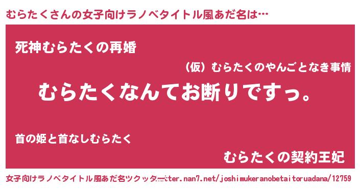 | 意味不明あだ名 | 『自称むらたく』『永久保存むらたく』 |