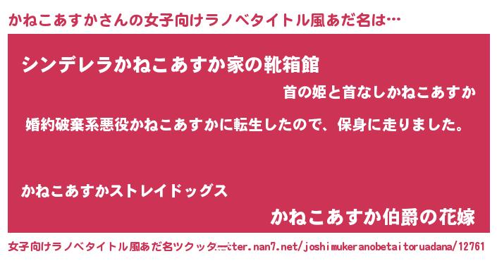 | 料理風あだ名 | 『かねこあすかごはん』 |