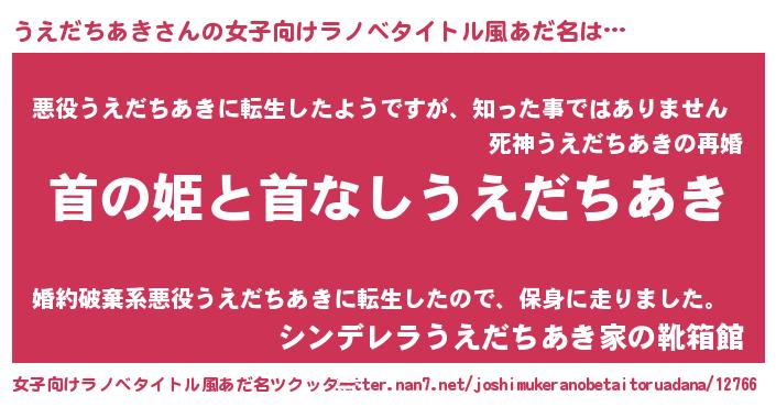 | 胡散臭い通販商品みたいなあだ名 | 『ハリウッド女優が絶賛した100年もののヴィンテージワイン…その名も「うえだちあき」』 |