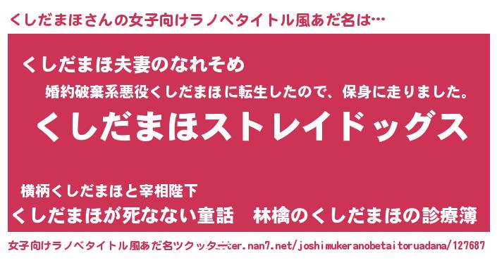 | 伝説のあだ名 | 『救世主となる錬金術士くしだまほ』 |