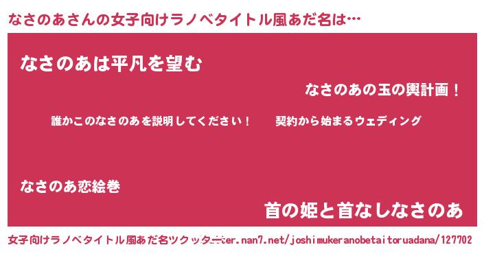 | 男性向けラノベタイトル風あだ名 | 『ナサノアアートオンライン』 |