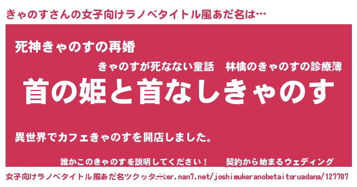 | 男性向けラノベタイトル風あだ名 | 『はたらくきゃのすさま!』 |
