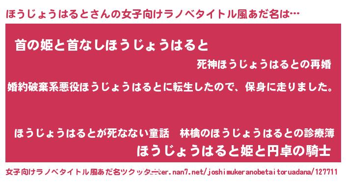 | 料理風あだ名 | 『ほうじょうはるとごはん』 |