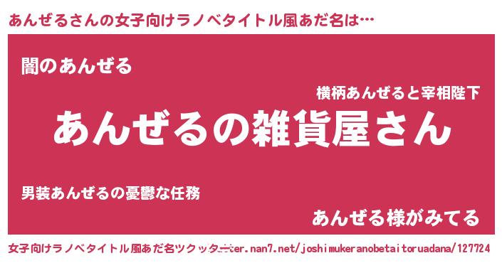 | 男性向けラノベタイトル風あだ名 | 『やはりあんぜるの青春ラブコメはまちがっている 』 |