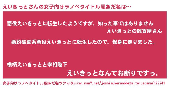 | 胡散臭い通販商品みたいなあだ名 | 『ハリウッド女優が絶賛した100年もののヴィンテージワイン…その名も「えいきっと」』 |