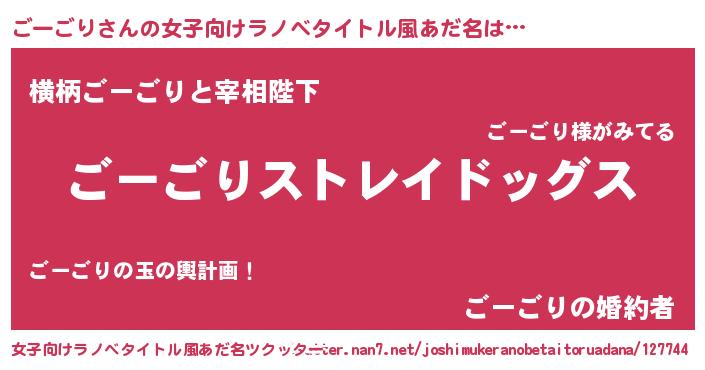 | 男性向けラノベタイトル風あだ名 | 『Re:ごーごりから始める異世界生活』 |