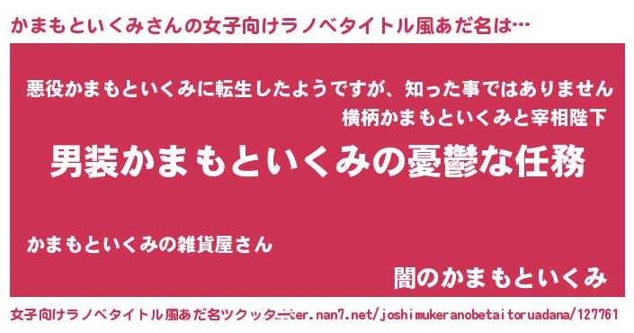 | 男性向けラノベタイトル風あだ名 | 『うちのかまもといくみが世界を掌握している!』 |