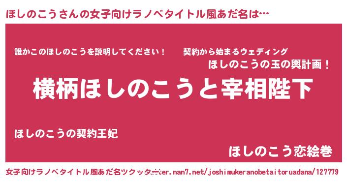 | 男性向けラノベタイトル風あだ名 | 『ほしのこうに滅ぼされるだけの簡単なお仕事です』 |