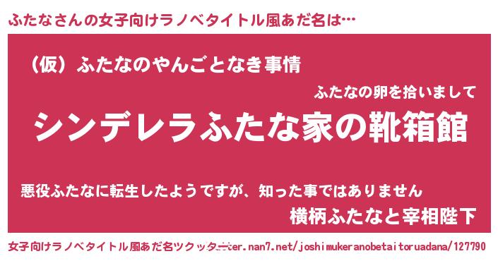 | 胡散臭い通販商品みたいなあだ名 | 『必ず成功する霊験あらたかなお札…その名も「ふたな」』 |