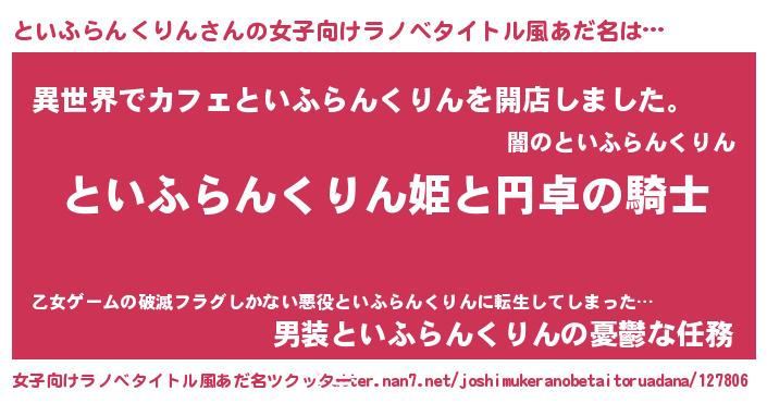 | 男性向けラノベタイトル風あだ名 | 『トイフランクリンアートオンライン』 |