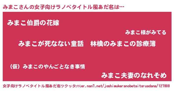 | 男性向けラノベタイトル風あだ名 | 『魔弾の王とみまこ』『みまこの憂鬱』 |