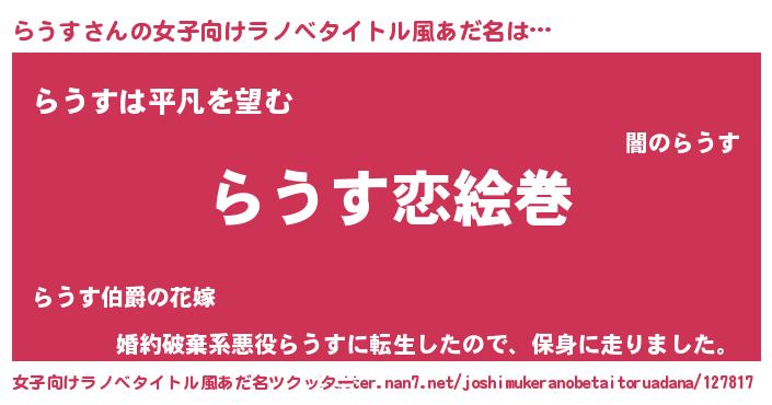 | ヒーロー風カッコイイあだ名 | 『愛の使者らうす』『黄金騎士ラウ』 |