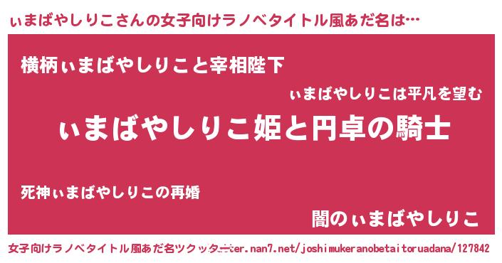 | 男性向けラノベタイトル風あだ名 | 『ぃまばやしりこの憂鬱』 |