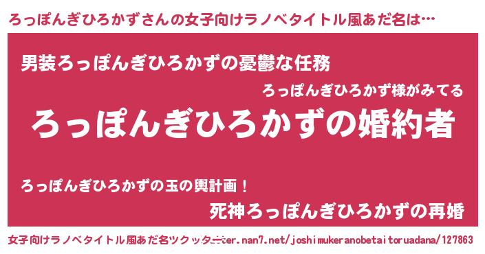 | ファンタジー風あだ名 | 『エターナルロッポンギヒロカズー』 |