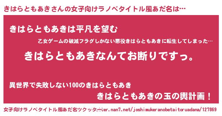 | 意味不明あだ名 | 『自称きはらともあき』 |