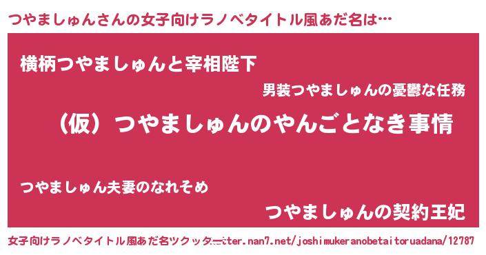 | 男性向けラノベタイトル風あだ名 | 『つやましゅんの憂鬱』 |